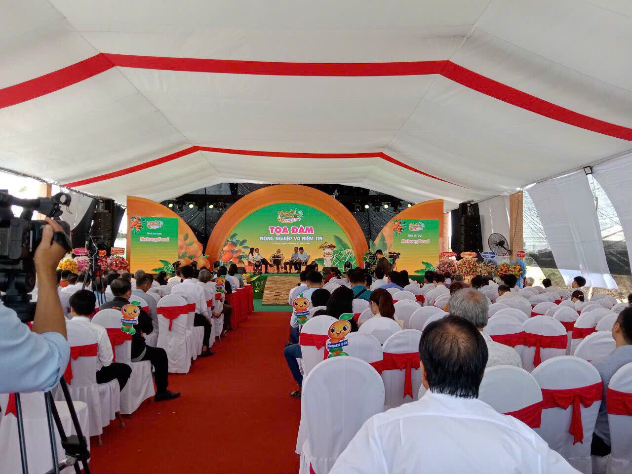 Trang trí không gian nhà bạt phục vụ sự kiện gian hàng ngày hôi cá tra huyện Hồng Ngự
